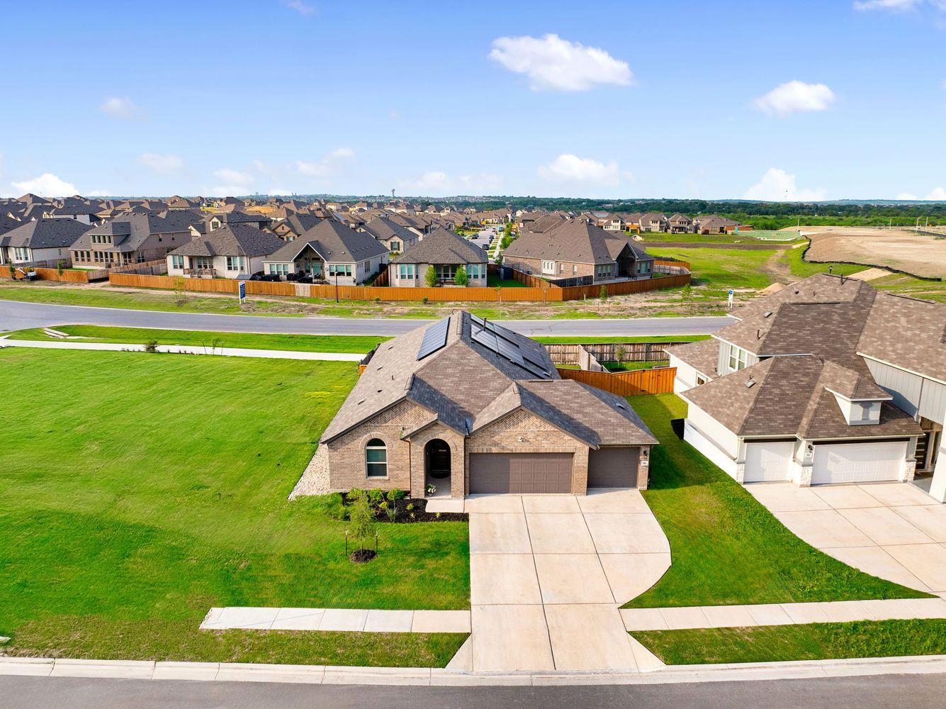 Why wait to build when this beautifully upgraded home is move-in ready and far better than new? With over $50,000 in thoughtful enhancements, every detail has been elevated for comfort, efficiency, and style. Enjoy fully paid-off solar panels that keep electric bills low, epoxy-coated garage floors, and a whole-home water softening and reverse osmosis filtration system -- upgrades you won’t find in standard new construction. You’ll also have peace of mind with a 7-year remaining builder structural warranty and a 1-year third-party home warranty. Plus, buyers can take advantage of a free mortgage rate buydown through a preferred lender. Set on a private lot with only one side neighbor and featuring a spacious 3-car garage, this home offers both privacy and practical storage. Inside, fresh paint gives the home a crisp, modern feel. The popular single-story layout provides effortless flow and functionality, with 4 generous bedrooms, 3 full bathrooms, and a flexible office or bonus space. Tall ceilings and an open-concept living area let natural light fill the home, creating a bright, welcoming space ideal for entertaining or everyday living. Located in Crosswinds, you’ll enjoy the best of Hill Country living just south of Austin in the thriving city of Kyle. The community features resort-style amenities including a pool, splash pad, pickleball courts, dog park, and miles of walking trails. Zoned to highly rated Hays CISD schools, including Ralph Pfluger Elementary. This is a rare turnkey opportunity that truly outshines new builds -- come see it for yourself!